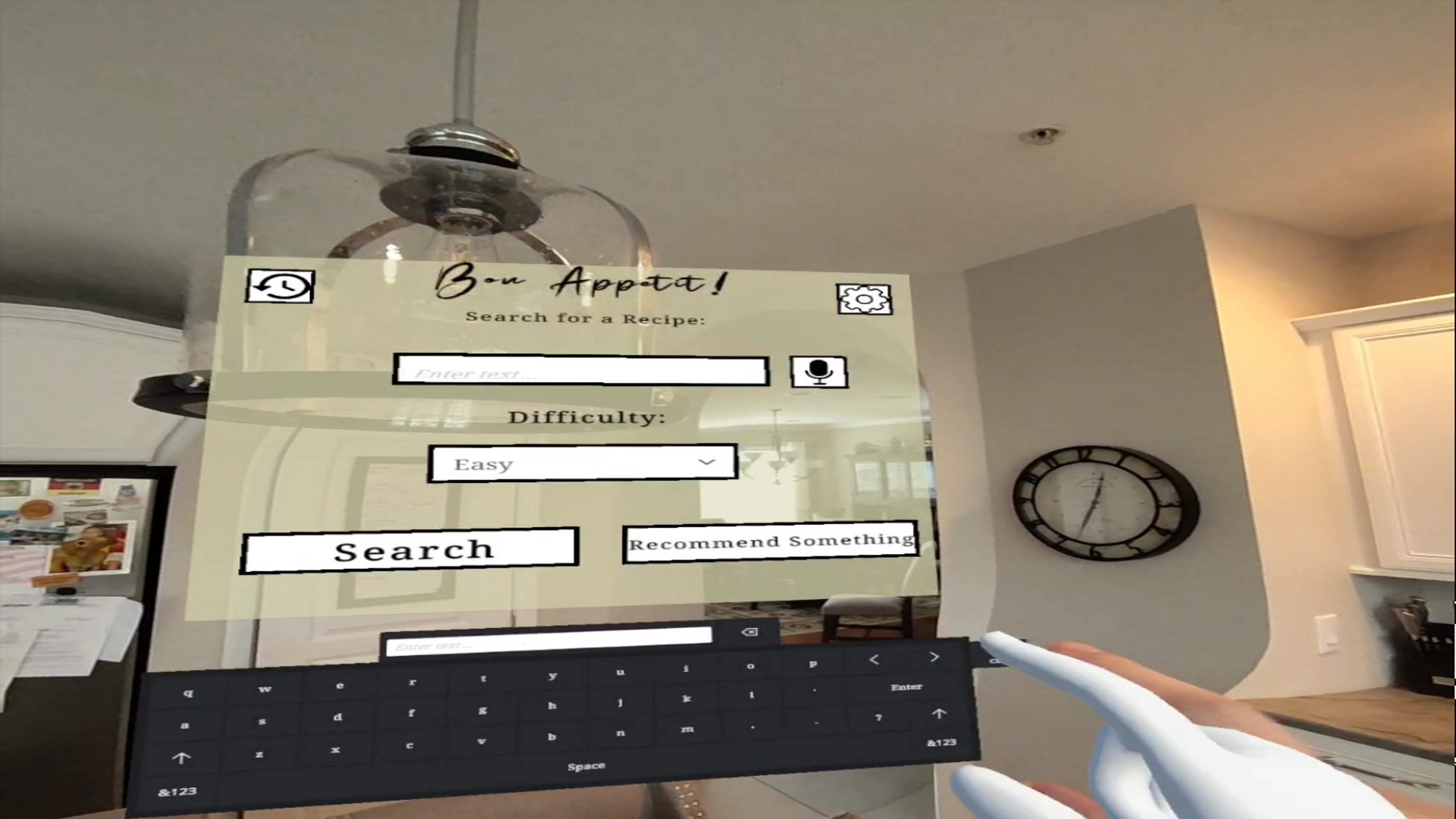 Appetit is your ultimate Mixed Reality virtual cooking assistant to help you in all your culinary ventures, small or large! Have recipes suggested to you, search for and create custom recipes that fit your needs and preferences, order ingredients online, adjust the recipe's difficulty and complexity and more! Appetit has your back in the kitchen.